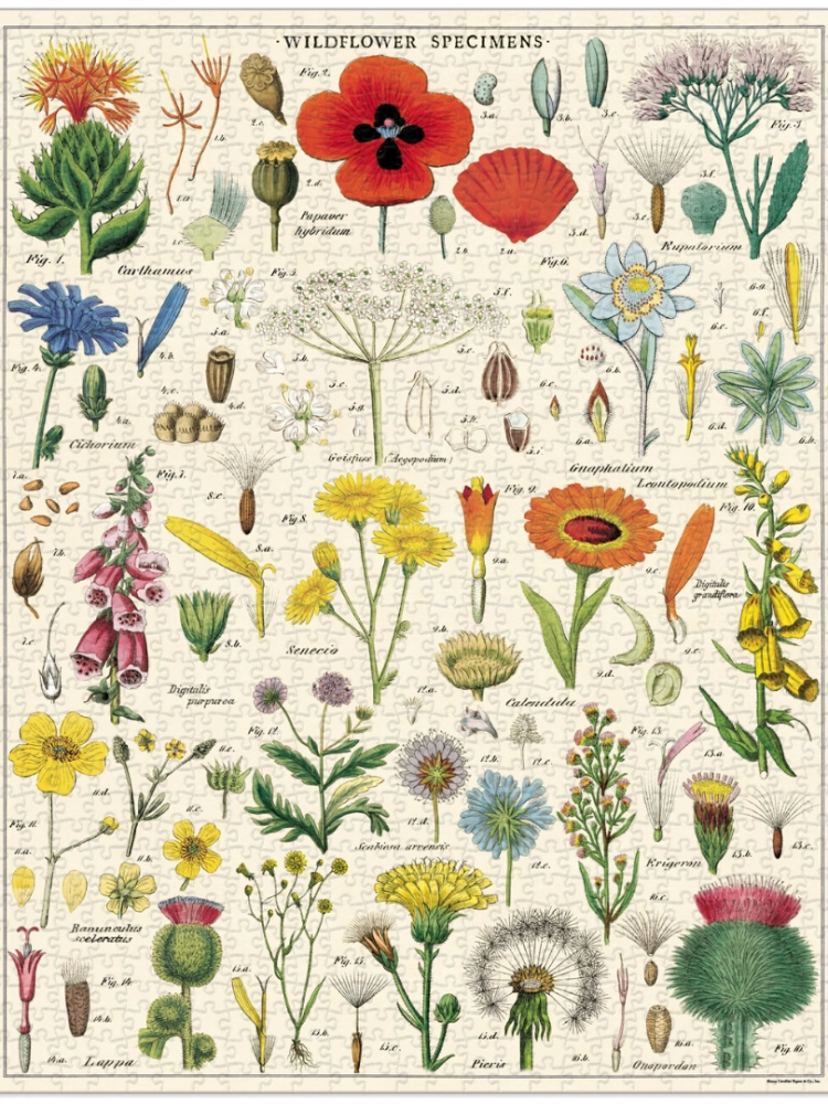 This beautiful chart of Wildflower specimens comes from a late 19th-century teaching aid and includes a range of plants such as Foxgloves, Calendula, Ragwort and Thistles. A must for any plant-loving puzzle fan!