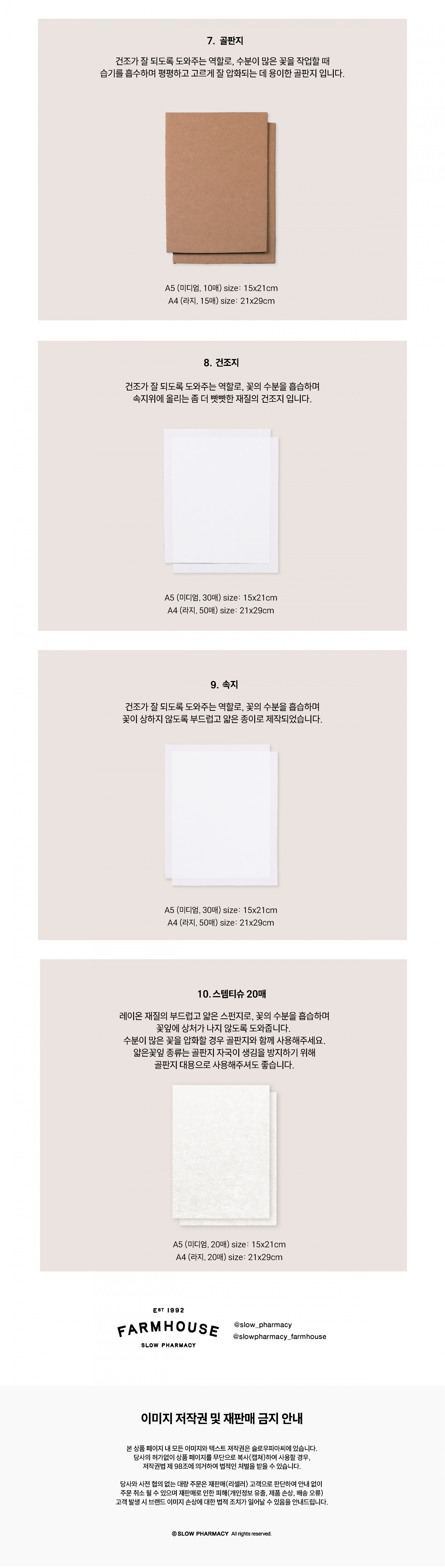 ∙ 건조지 (미니, 미디움 A5) 각30매 /(라지 A4) 50매