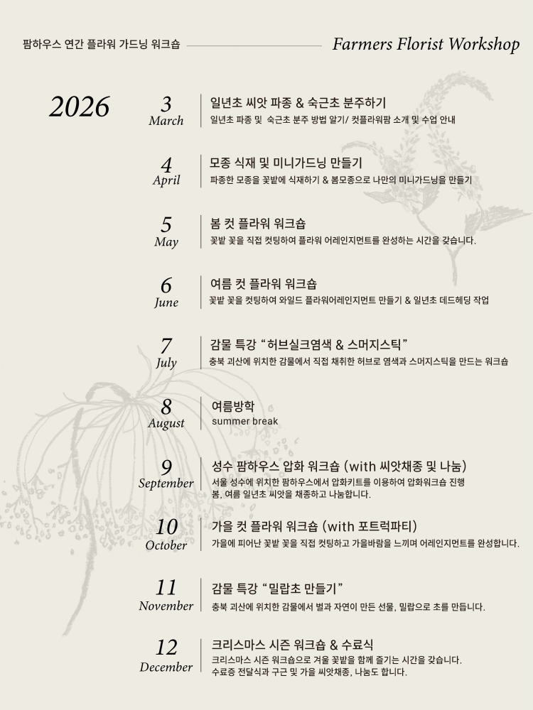 2026 팜하우스 연간 플라워 가드닝 워크숍 Farmers Florist Workshop (2기 모집)