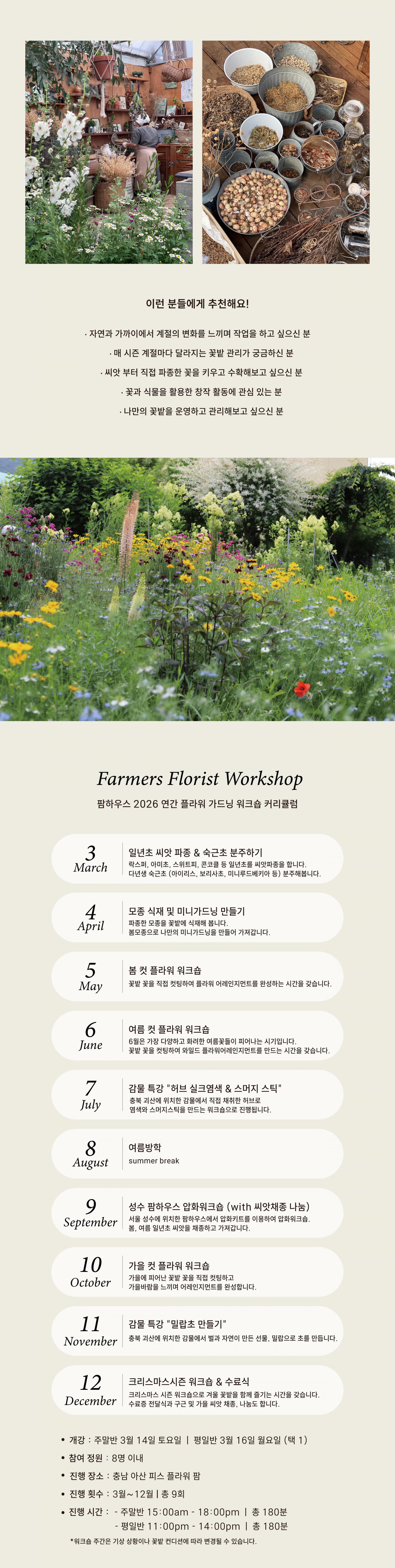 * 워크숍 일자는 기상 상황이나 꽃밭 컨디션에 따라 변경될 수 있습니다.