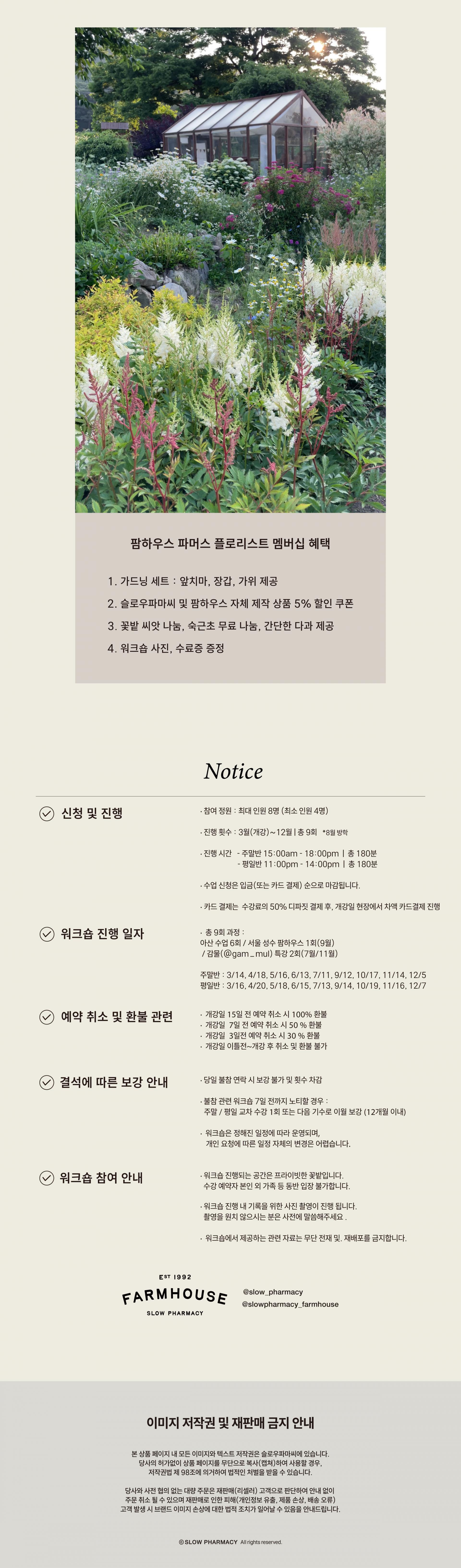 - 총 9회 과정 : 아산 수업 6회 / 서울 성수 팜하우스 1회(9월) / 감물(@gam_mul) 특강 2회(7월/11월)